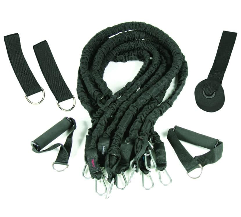 The American Barbell Black Resistance Tubes comprise a complete home gym system. In addition to the six resistance bands, you also get a pair of grip handles, 2 Velcro straps, and a foam strap. The tubes are shrouded in a black protective covering to keep them in great condition. These bands are extremely durable and responsive.